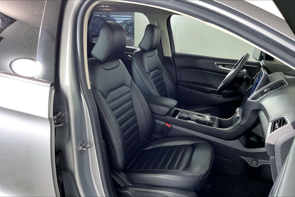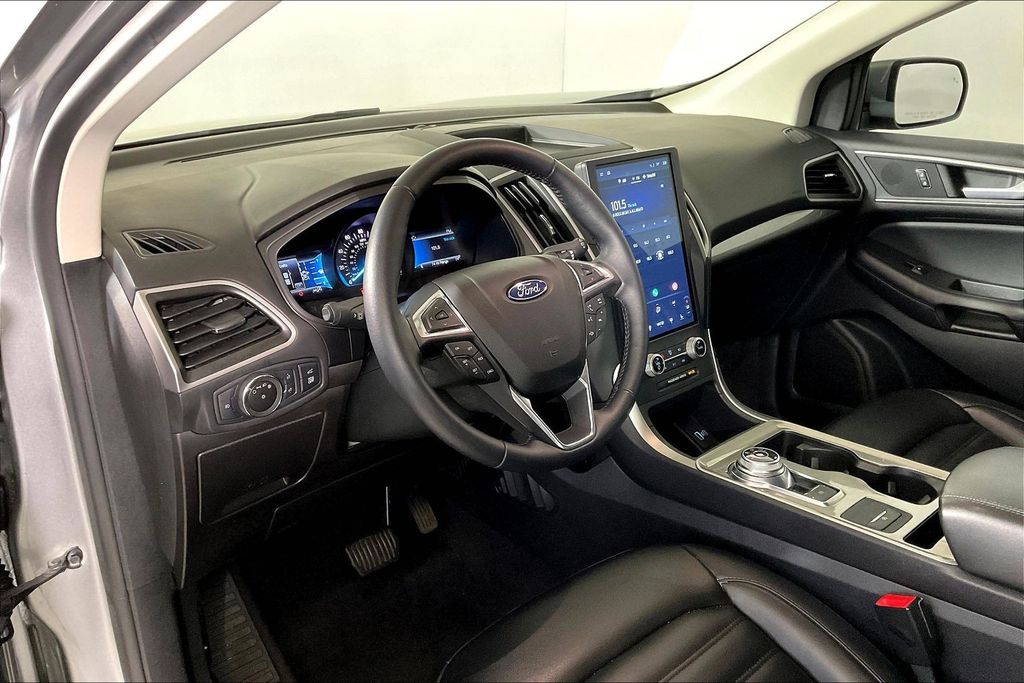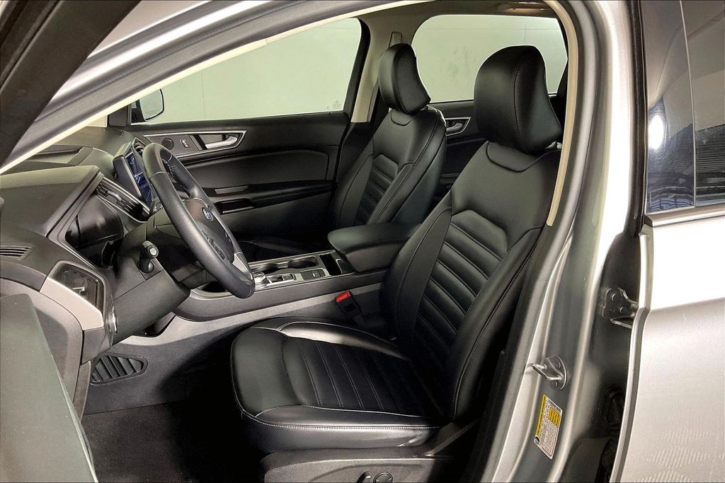 Iconic Silver Metallic 2023 Ford Edge SEL AWD 8-Speed Automatic EcoBoost 2.0L I4 GTDi DOHC Turbocharged VCT AWD, 110V/150W AC Power Outlet, Brake assist, Convenience Package, Fog Lamps w/Iconic Silver Bezel, Panoramic Vista Roof, Perimeter Alarm, Power Liftgate, Remote Start System, Universal Garage Door Opener (UGDO), Wireless Charging Pad.