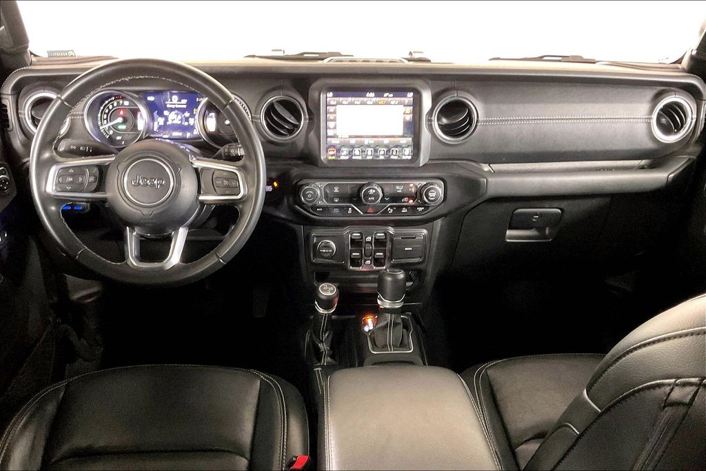 Black Clearcoat 2022 Jeep Wrangler Unlimited Sahara 4xe 4WD 8-Speed Automatic 2.0L I4 DOHC 2.0L I4 DOHC, ABS brakes, Alloy wheels, Compass, Electronic Stability Control, Front dual zone A/C, Heated door mirrors, Illuminated entry, Low tire pressure warning, Navigation System, ParkView Rear Back-Up Camera, Passenger door bin, Remote keyless entry, Traction control.